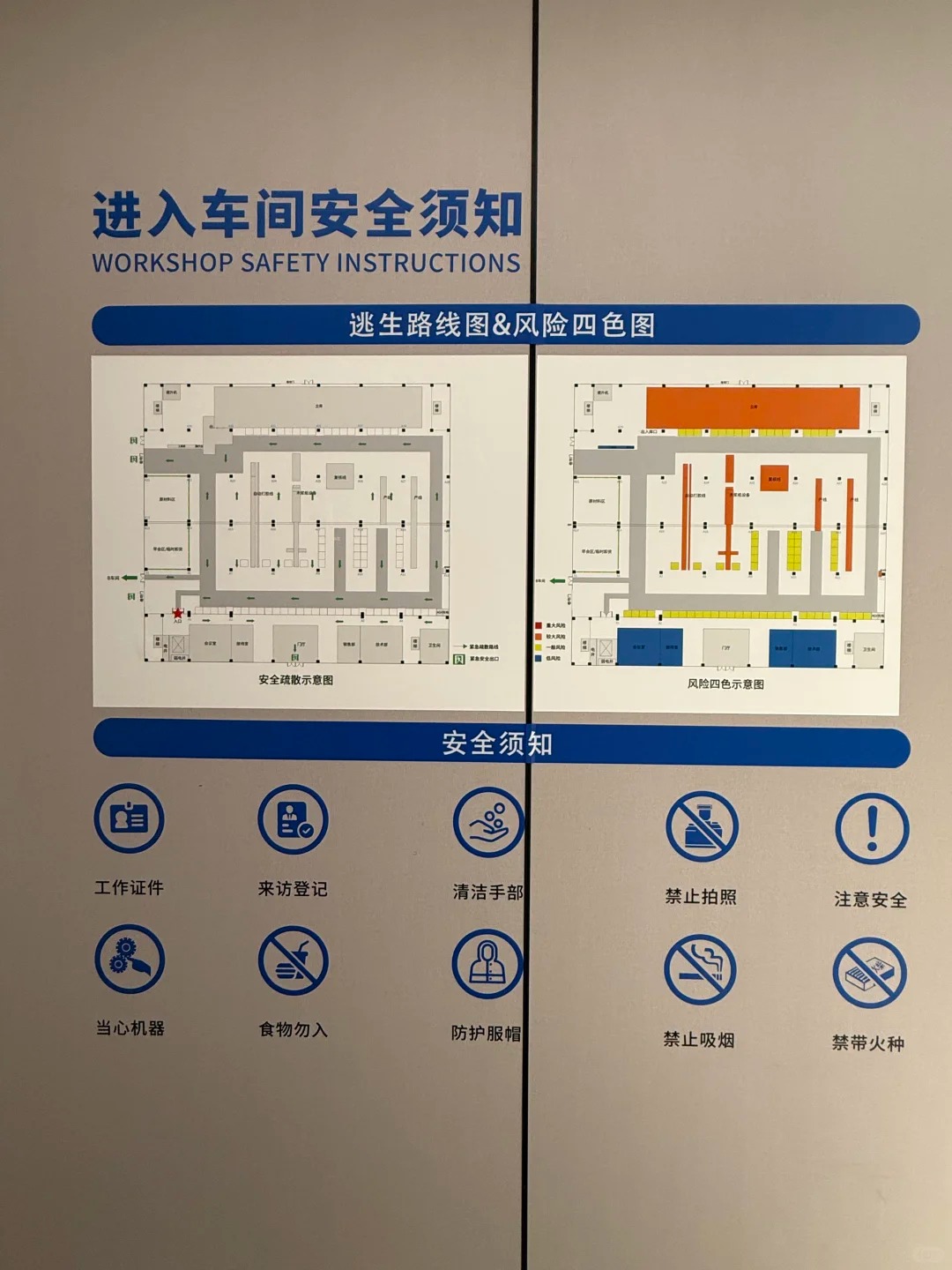 这套安全双保险的打造方案,已在多家企业落地验证,实操性极强: 1、四色风险标定 给车间划清“安全边界” 遵循“蓝低、黄中、橙较高、红极高”的行业标准,对车间全域进行风险分级标注。蓝色标注一般作业区(如组装工位),黄色标注常规风险区(如餐饮燃气区、儿童游乐区),橙色标注较大风险区(如高压配电室、储油间),红色标注极高风险区(如危化品存储区、反应釜周边)。用不同颜色的地面标线、墙面标识划分区域边界,搭配风险说明牌,注明风险类型、防控措施。 2、逃生路线可视化 一图读懂“安全通道” 绘制覆盖全车间的逃生路线图,张贴在车间入口、楼梯间、大型设备旁等关键位置。图中用绿色箭头标注最优逃生路线,红色箭头标注备用路线,清晰标注安全出口编号、应急集合点位置,将逃生出口与周边工位/设备对应,比如“3号出口位于注塑机A区北侧”,让员工快速定位。采用夜光材质制作,确保断电、浓烟环境下依然清晰可见。 3、应急资源标注 关键物资“一眼找到” 在风险地图和逃生路线图上,同步标注应急物资位置,包括灭火器、消防栓、微型消防站、防爆器材柜、洗眼器等。对微型消防站、防爆器材柜采用对角交叉放置原则,并在图中用醒目标识标注,确保突发情况时,员工能在30秒内找到应急物资。 4、全员培训落地 让“双保险”深入人心 新员工入职必须进行风险地图和逃生路线培训,每月开展1次应急演练,演练结果公示在看板上。在车间设置互动问答区,定期更新“风险识别小测试”,比如“橙色区域对应的风险等级是什么?”,强化员工对四色编码和逃生路线的记忆。 安全无小事,一次精准的可视化改造,就能为企业筑牢生命防线。现在咨询,专业团队上门勘测现场,为企业量身定制风险四色图及疏散示意图目视化,含可视化标识制作、安装、培训全流程服务。立即行动!给员工一份安全保障,给企业一份安心承诺。